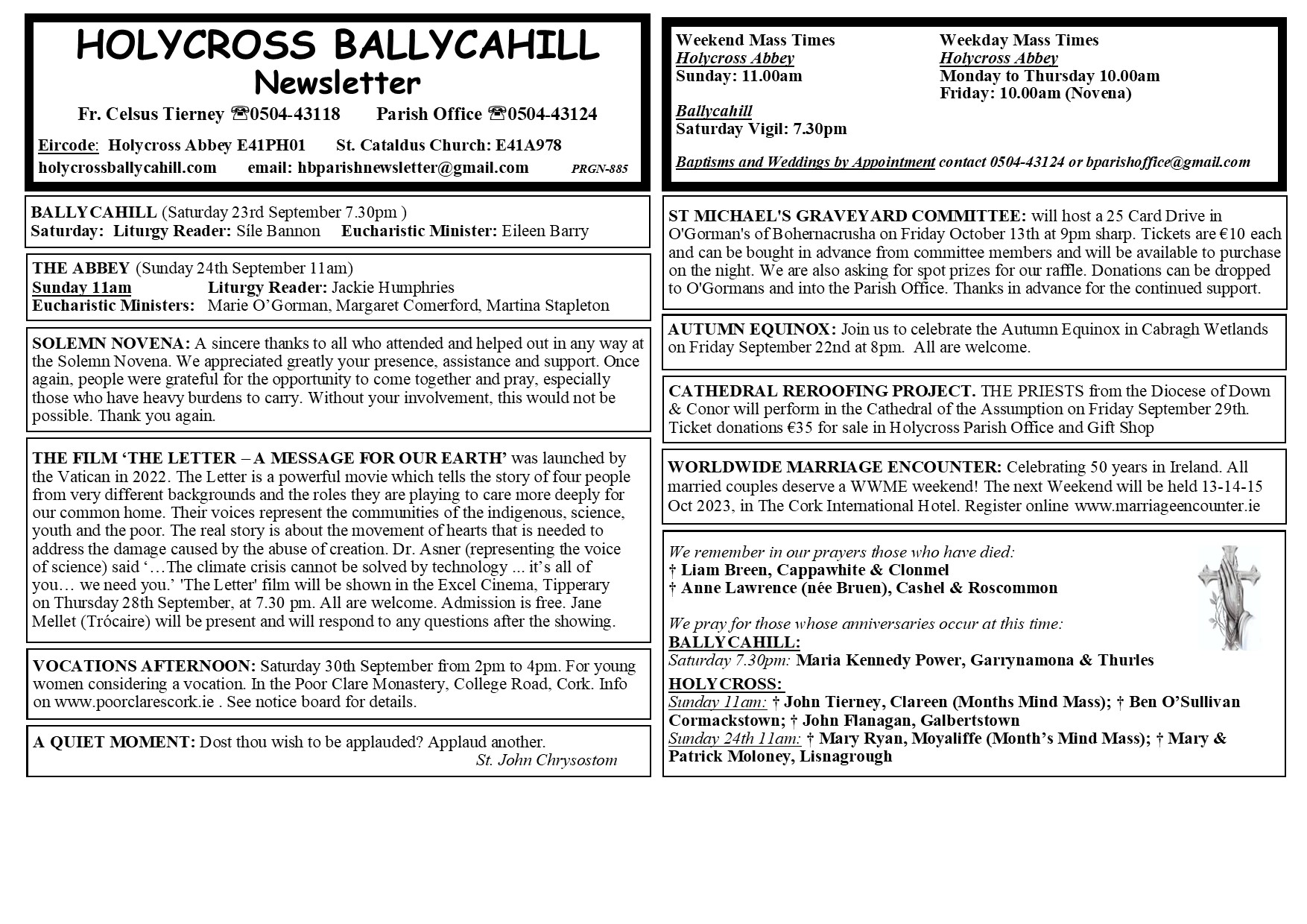 Parish Newsletter 17th September 2023 adminSeptember 15, 2023September 15, 2023 Uncategorized 17th-September-2023-parish-newsletter-1Download ← 25 Card Drive – Holycross Graveyard Committee Parish Newsletter 24th September 2023 →